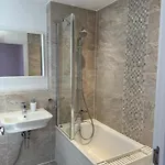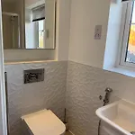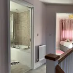Die Villa in Bristol verfügt über ein Badezimmer mit einem Bidet, einer begehbaren Dusche und einer getrennten Toilette. Es werden auch ein Haartrockner und Badelaken angeboten.